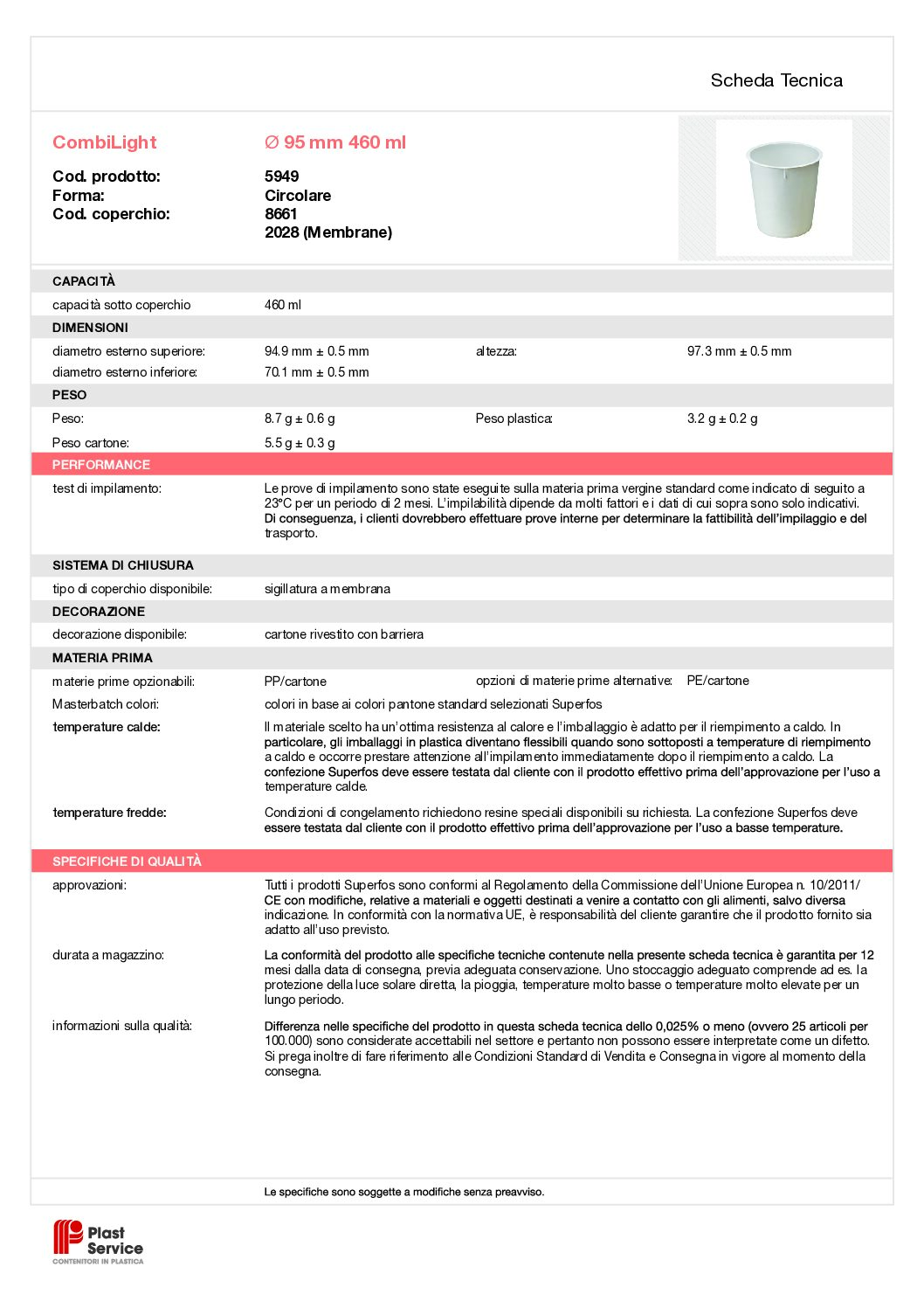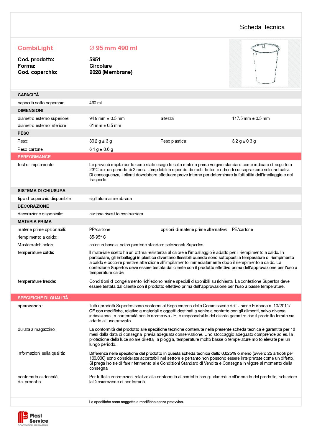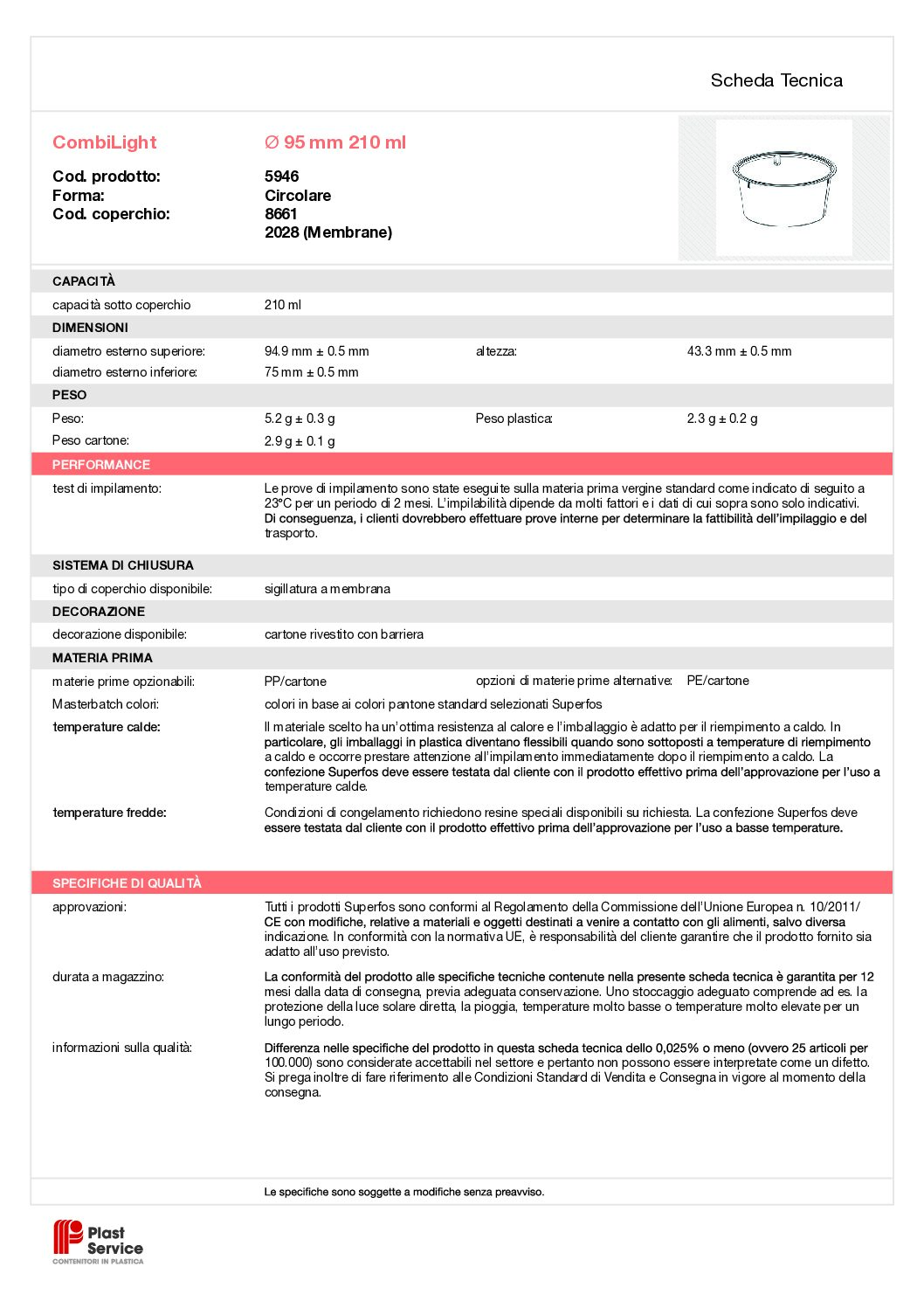 Il vaso CombiLightTM è costituito da una struttura in polipropilene (PP) stampata a iniezione, combinata con cartone rivestito a barriera. Disponibile anche una struttura in PET. Il risultato è un imballaggio leggero con una quantità minima di plastica. Rispetto ad altre soluzioni simili, il contenuto di plastica è ridotto fino al 60% nella gamma CombiLightTM, che è compatibile con le linee di riempimento esistenti.